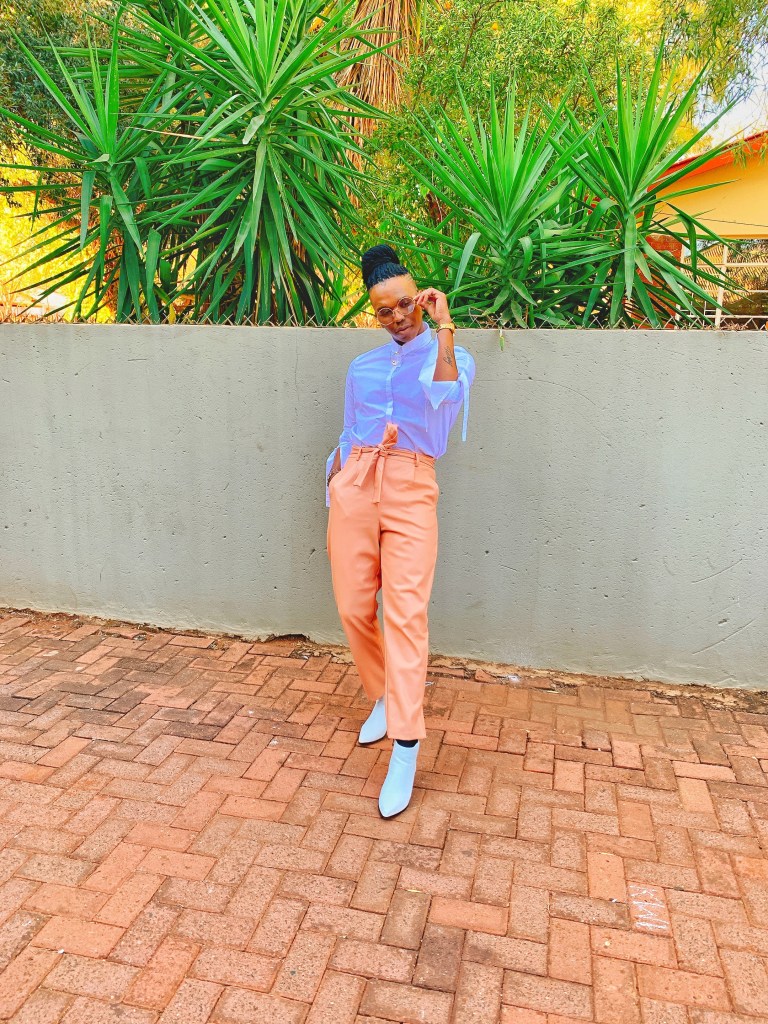I matched my pants with a similar colour top and matched my Nike sneaker with a simple trench coat